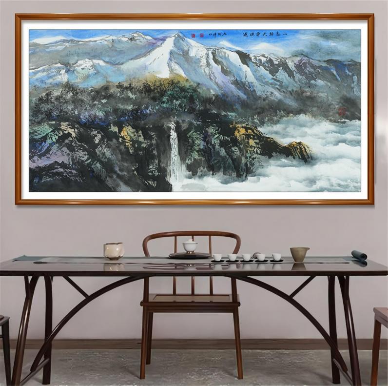 出生在雪域高原的他,从小就在经文、佛像、梵音的世界里长大。这种环境,赋予了他对“宇宙秩序”的独特感知。他认为山不是山,水不是水,它们都是天地精神的化身,是信仰的象征。因此,他的山水不是描摹自然,而是在表达一种宇宙观、一种哲学观。这正是他与普通艺术家的根本区别所在。