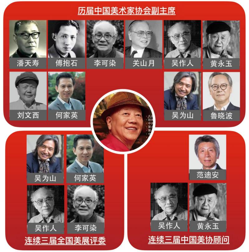 他之所以“站得稳、价值高”,是因为他的艺术与国家荣誉绑定在一起。全国政协委员,四届连任;中国美术家协会副主席;中国国家画院顾问;国家民族画院名誉院长;中央文史研究馆馆员。这五重身份,让他的作品不仅仅属于市场,更属于国家、属于民族精神的象征。