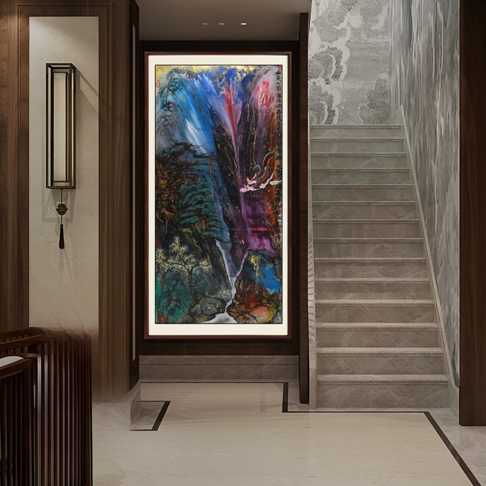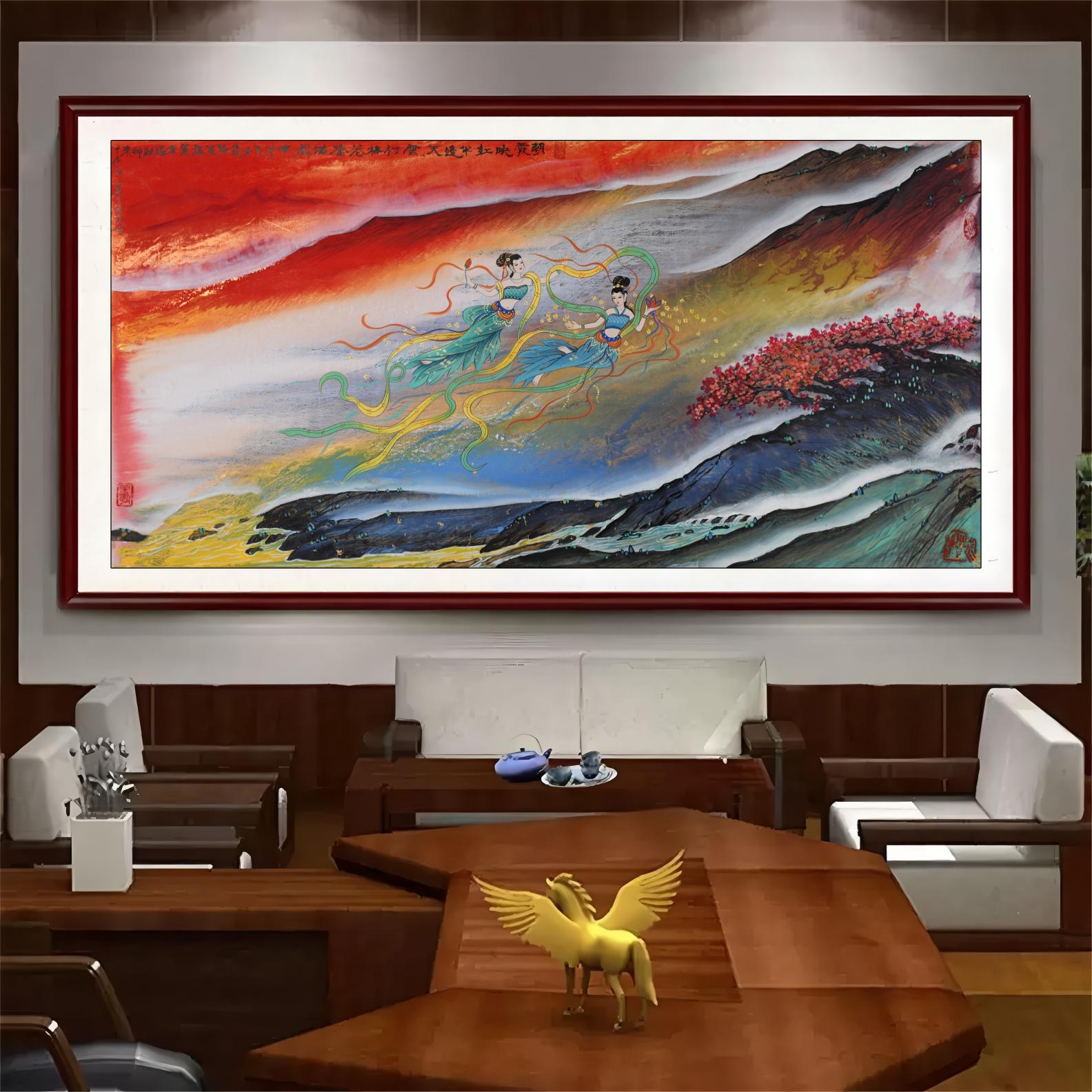2011年,他的代表作《坚田落雁图》作为贵重艺术品被中国驻大阪总领事馆永久珍藏。这不仅是一幅画的荣耀,更是一个民族艺术在国际舞台上的胜利。2024年,他策划并主导的“魂系敦煌·霓彩世界”全国巡展在敦煌隆重启幕;2025年北京站的盛大开幕,再次引发艺术界轰动,成为年度艺术盛事之一。