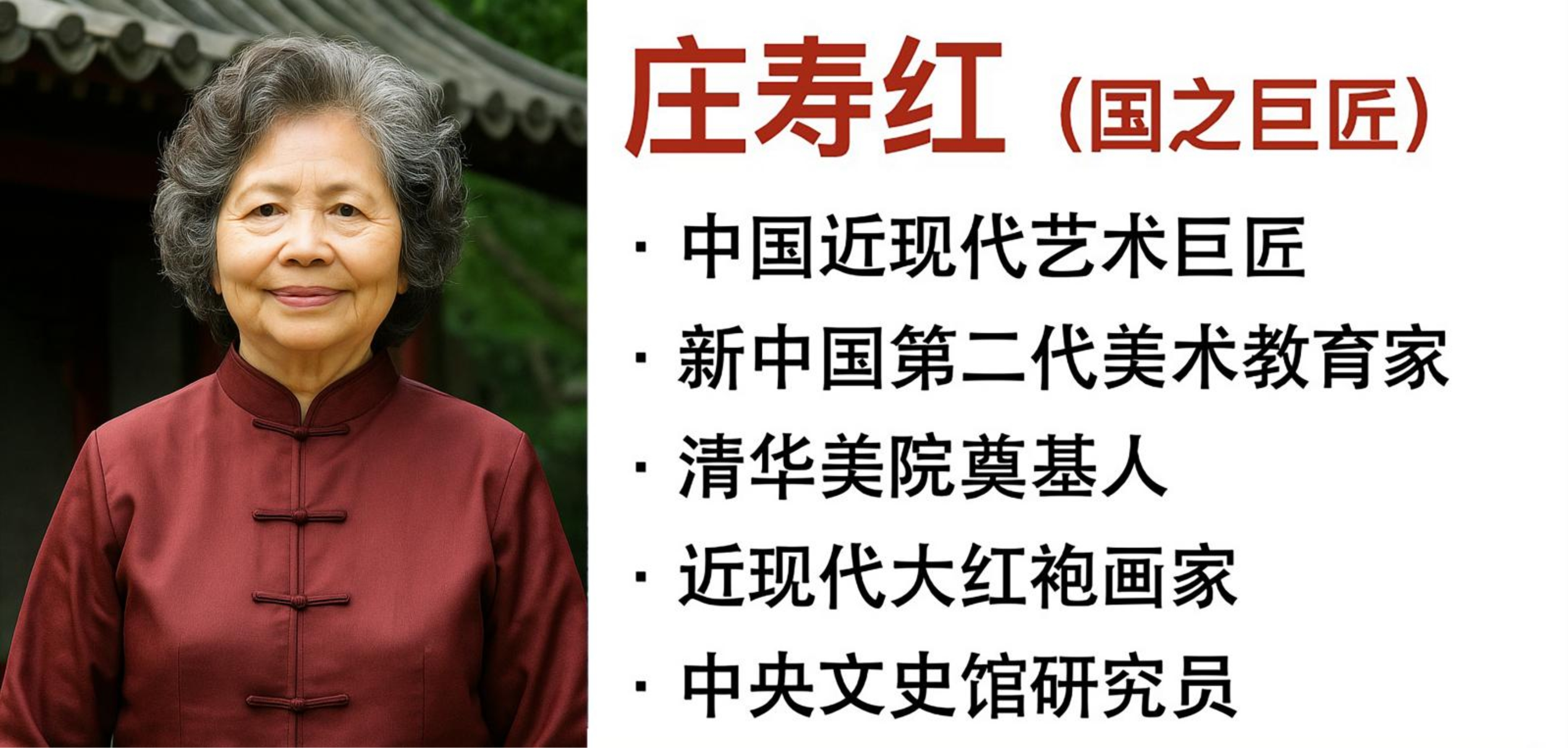 庄寿红,中国近现代艺术巨匠,新中国第二代美术教育家,清华美院奠基人之一,中央文史馆研究员。她是少数直接继承中央美院与清华美院艺术精神的女性艺术家,被誉为“清美创始三杰”,与吴冠中、张仃并列,是中国近现代艺术教育体系的重要奠基者。