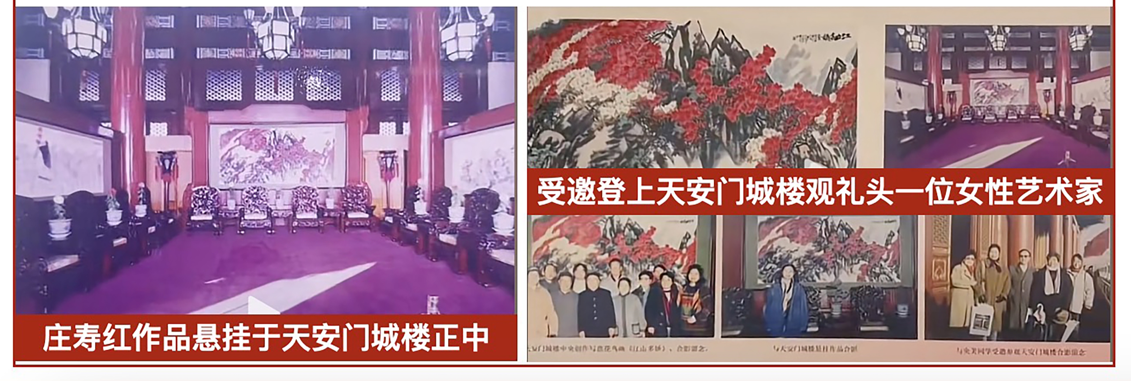 她的艺术地位之高,独步全球:作品悬挂于天安门城楼正中厅,入藏国务院办公厅、大会堂、国家博物馆、中南海、中国美术馆等国家级艺术机构,成为国家文化象征的巅峰标志。她是唯一受邀登上天安门城楼观礼的女性艺术家,用红色书写历史,用艺术点燃民族自信。