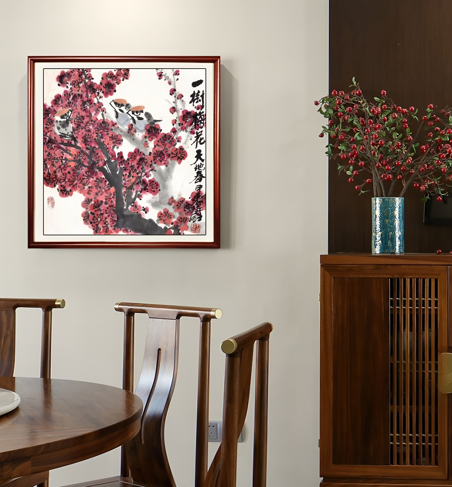 庄寿红的艺术,以红色为魂,色彩为力,笔墨刚柔并济,色彩浓烈而典雅,将李苦禅、潘天寿的雄浑与女性温婉情感完美融合。每一幅作品都是视觉与心灵的双重盛宴,每一次观赏都是精神的洗礼与震撼。
