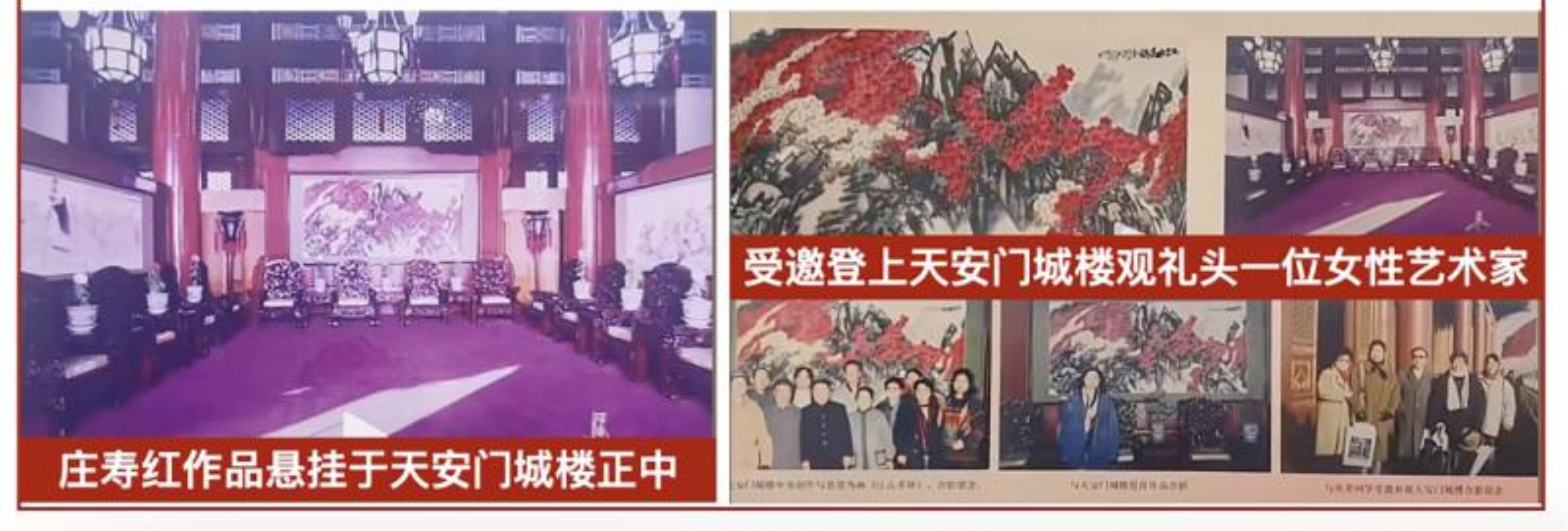 一个艺术家,若能让自己的作品走出画室,那是荣誉;若能让自己的作品走进国家殿堂,那是历史;而庄寿红,早已超越了这两个层面。她的代表作品悬挂在天安门城楼正中厅,这是无数艺术家梦寐以求、却难以企及的荣耀。她本人,更成为唯一受邀登上天安门城楼观礼的女性艺术家。