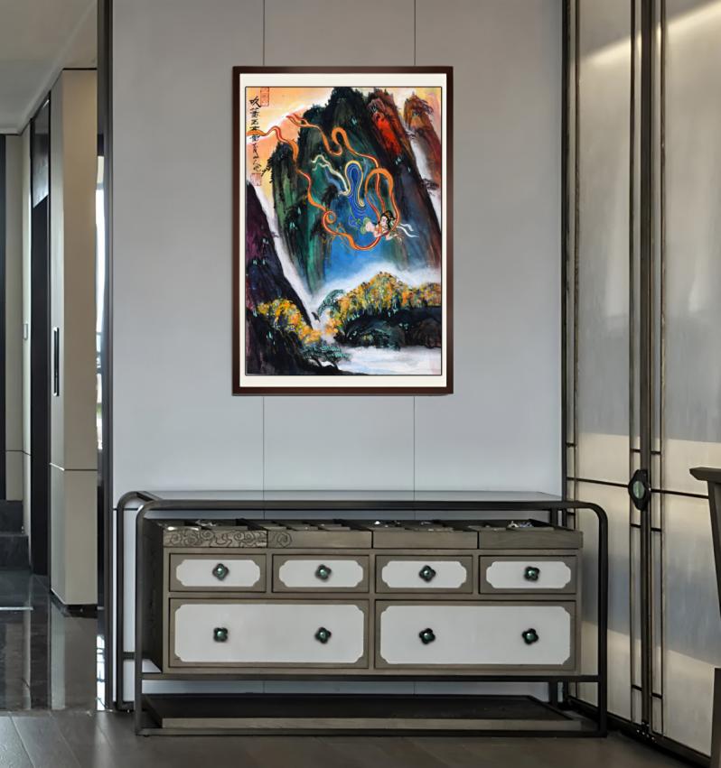1987年,带着赵朴初与常书鸿的嘱托,他东渡日本。三十年间,他不仅是艺术教授,更是文化使者。他在京都造型艺术大学、大阪摩登学院、日本国际建筑大学校执教,以汉唐美学启迪无数青年艺术家。他以东方的色彩体系,征服了西方的审美逻辑;他让日本学界第一次用“圣画”来形容一个中国画家的作品。