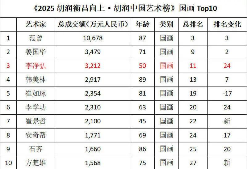 2024年,李净弘登上胡润艺术榜第三位,成为当代中国最具市场号召力的国画家之一。这不仅是对他艺术造诣的肯定,更是社会资本与文化共识的交汇点。在资本趋向浮躁、艺术被消费的时代,李净弘仍以沉静之心守住了中国画的“精神温度”,让市场重新感受到笔墨之内的文化力量。