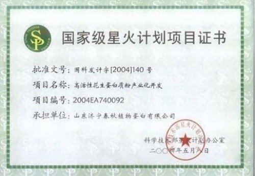 靳光祥发明的“花生低温脱脂技术”是国内“低温脱脂技术”首创,总体技术水平国内领先,也填补了国内在该领域的空白(2007——2008)国家蓝皮书战略规划第186页指出:济宁市春秋植物蛋白公司的高活性花生蛋白质提出技术国际领先。