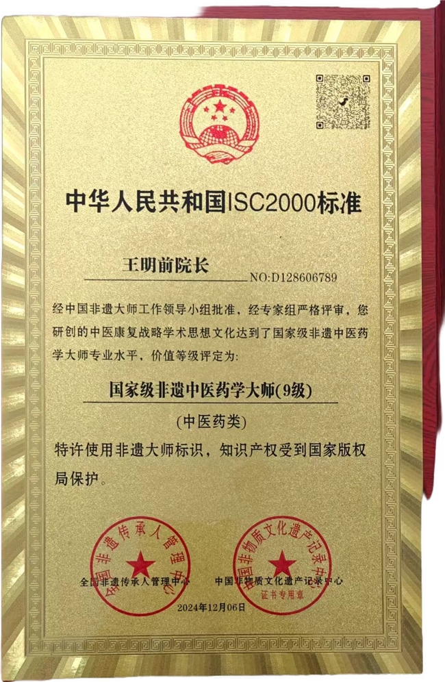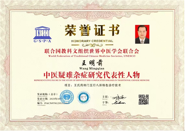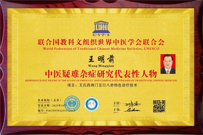 王氏药师门五行八卦诊脉法、王氏药师门五行八卦针灸秘 籍术、王氏药师门五行八卦点穴麻醉无创无痛接骨术、王 氏药师门五行八卦点穴推拿术历史悠久,技艺精湛,取得 社会广泛认同,荣誉入选,中华老字号。中国民族卫生协 会难治病专家委员会难治病专家委员,中国康复医学会会 员。