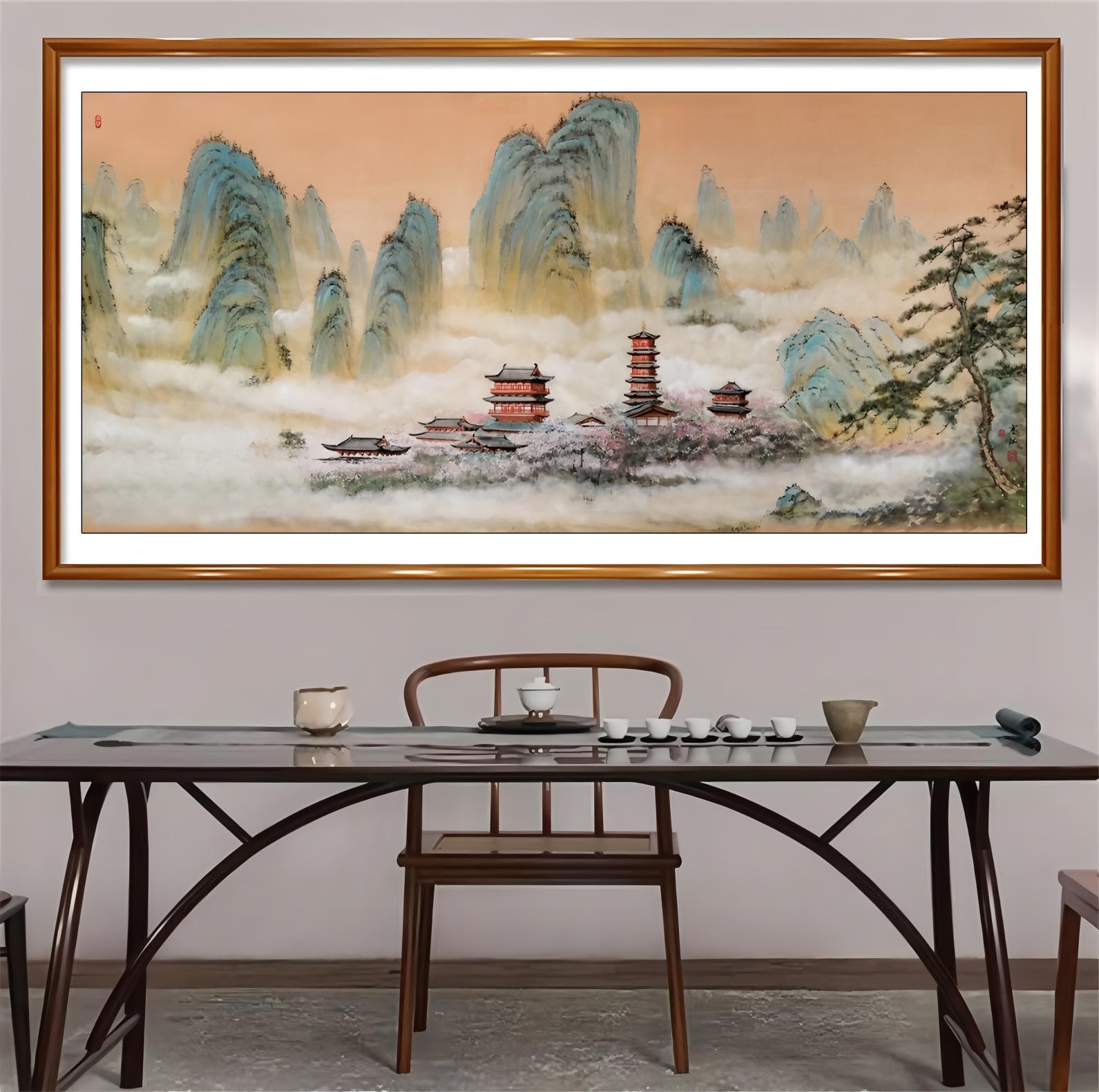 而寒江不是偏师承,而是——四师合一。这种师承结构,在当代画坛是罕见的,在历史上也是极为罕见的。他不仅继承了:山水的结构学、岭南的色彩与气象、吴氏美学的时代精神、界画的严谨逻辑;并且将它们融合成一种新的艺术体系——“寒江体系”。这不是继承,而是突破;不是延续,而是创造。