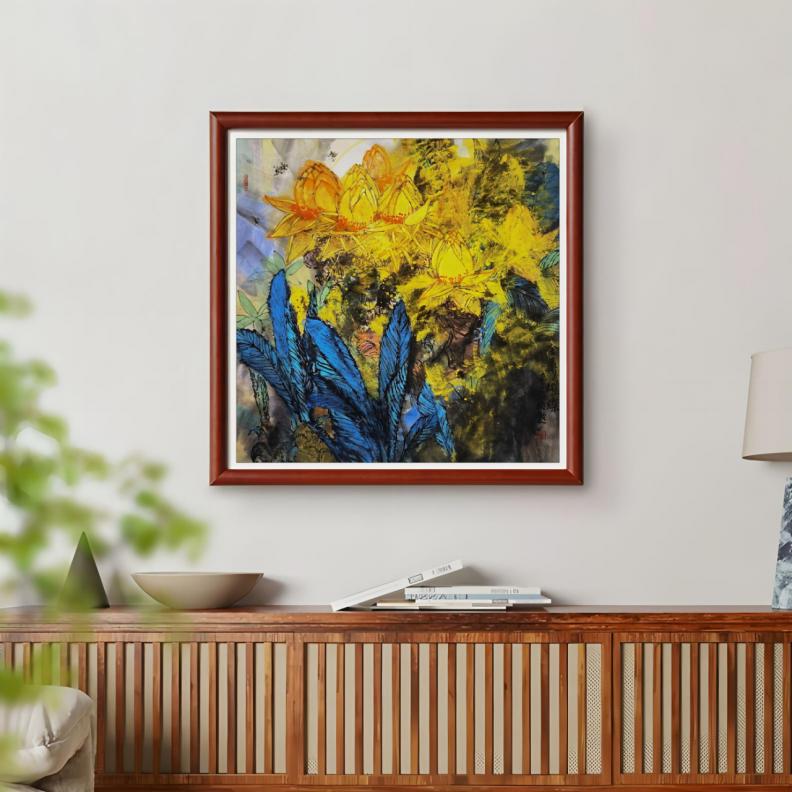 随便站在他的作品前,你会感到:色在呼吸,墨在跳动,整幅画像是有节奏、有骨骼、有灵魂的活体。于是,大写意彩墨,一个本不该出现的艺术体系,被他硬生生开辟出来。中国花鸟画千年长河,终于在李柏默这里,出现了新的方向、新的可能、新的王朝。