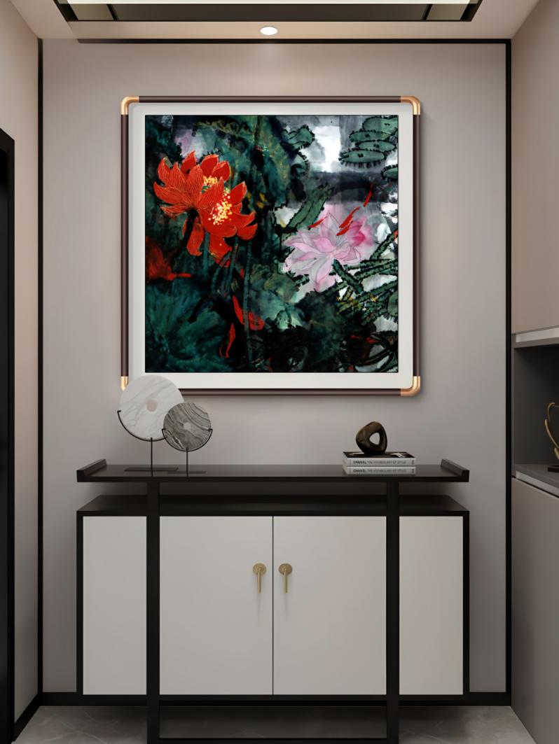 看李柏默的画,会让人产生一种无法言说的震撼。他的红荷,不是花,而是心跳;他的荷叶,不是叶,而是生命能量的律动;他的佛座金莲,仿佛天地福光凝成的神迹;他的缶器,不是器,而是一种文化符号的复活。在他的笔下,花不是花,是时代情绪;色不是色,是精神力量;画不是画,是生命与世界的对话。难怪学者说:“看李柏默的作品,总让人有读不尽的能量。”
