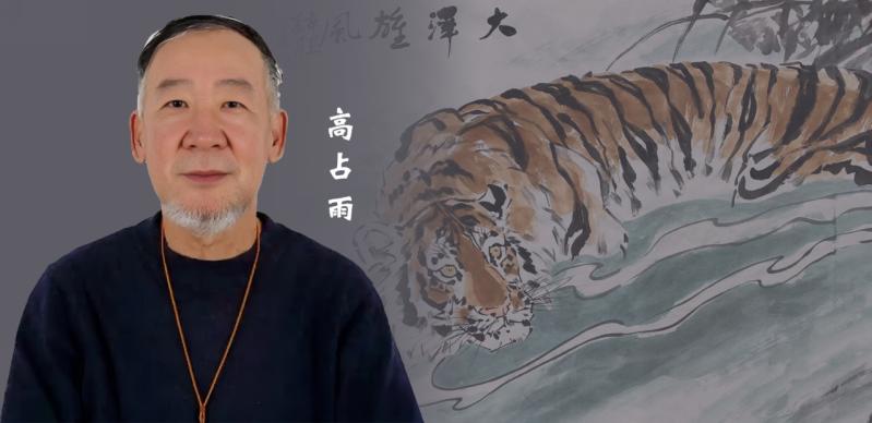 如果你曾亲眼目睹高占雨的虎,你将永世难忘。在中国画历史上,画虎者不少,但绝大多数只停留在表象与威猛之层,而高占雨却突破形象,直击神性本质。他的虎不是简单的“动物”,而是精神图腾、是民族性格、是正义与力量的化身。他的虎有眼神——睥睨天下、含悲守义;他的虎有姿态——伏如苍龙,起若神将;他的虎有境界——不怒自威,仁德宽厚。