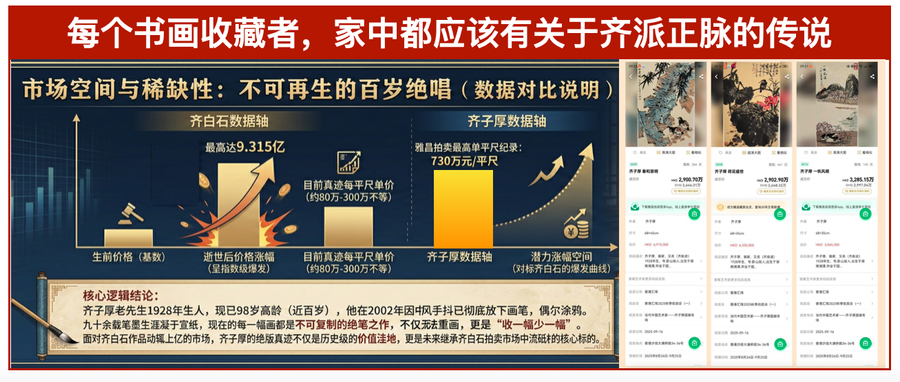 齐子厚先生的作品,向世界展示了中国大写意水墨的独特魅力,成为了中外文化交流的坚实桥梁。他的作品不仅在国内拍出过单平尺730万元的天价,在国际市场上同样具备着极高的流通性与硬通货属性。收藏齐子厚,不仅是收藏中国国粹,更是拥有一张代表东方审美的国际艺术名片。